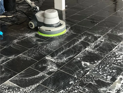Tile flooring and surfaces can accumulate layers of grime, soap scum, hard water stains, and mold, especially in kitchens, bathrooms,